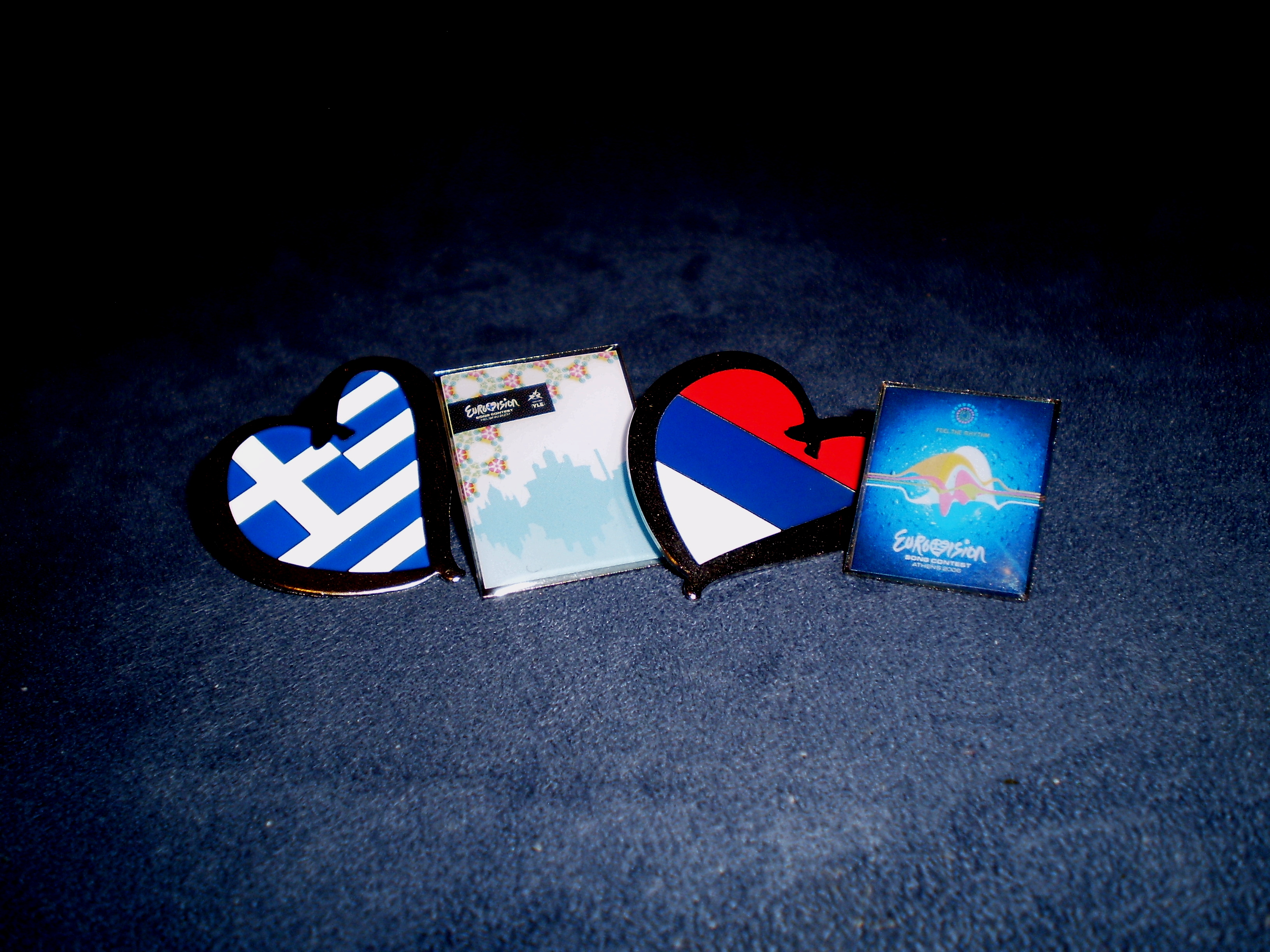 The pins: These (from left: Athens 2006, Helsinki 2007, Belgrade 2008 and Athens again) came from the official Eurovision.tv shop, in a surprise package. All you do is order it, and you get a bunch of random items in the mail - merchandise from the last few years - for a great price. There is a risk in that you may receive something you already have (like me) but it’s often worth it. I can’t say I’ve worn the badges yet, but I may have to decorate myself with them this year, as they’re less messy than writing ‘GO TURKEY!’ across your forehead with eyeliner as I did in 2010.
