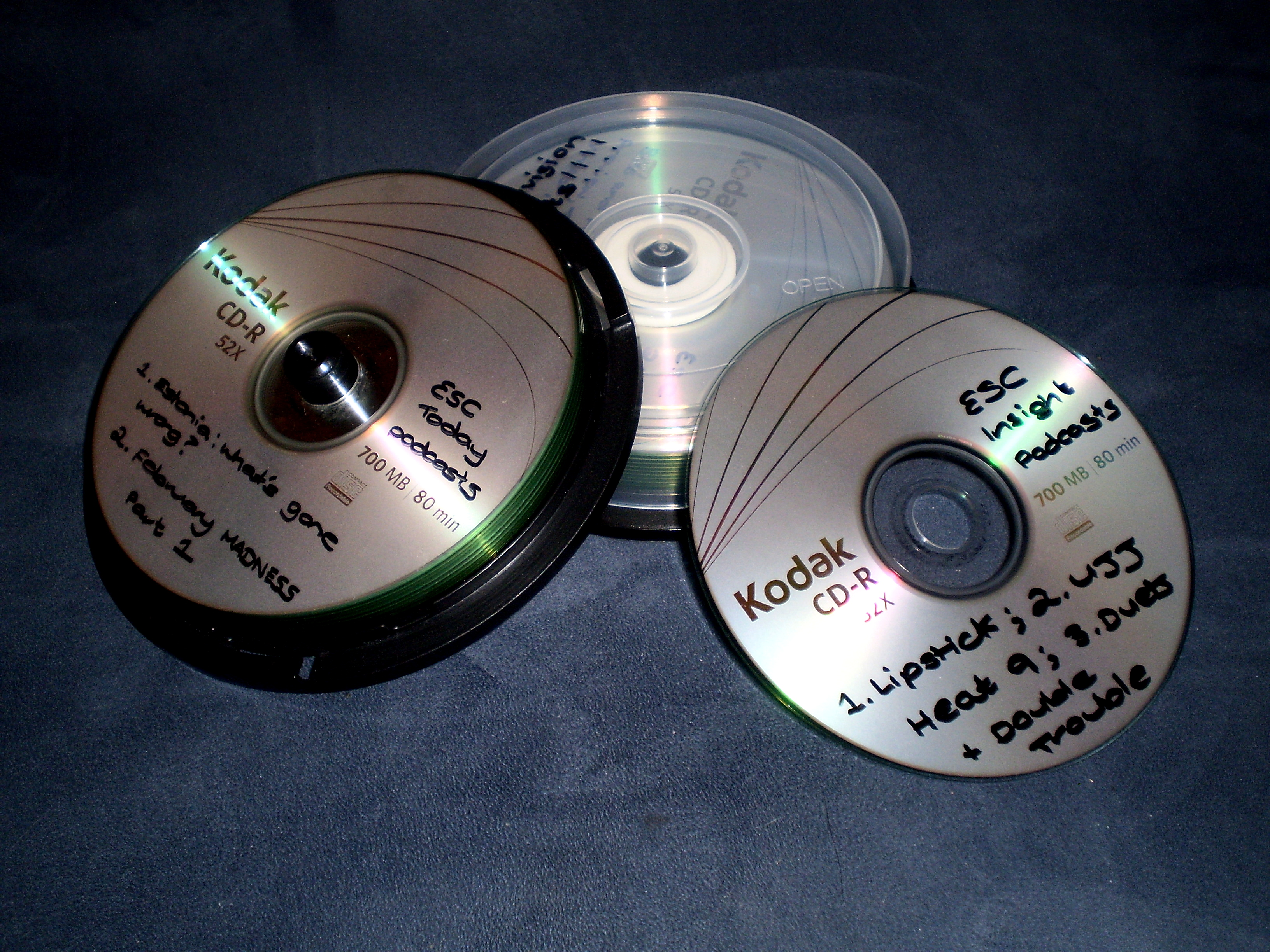 - The podcasts: It’s a long story as to why I have these on disc instead of on my iPod, so I’ll try to condense it for you: Chapter 1) They are comprehensive, which is fabulous, but they take up a LOT of room on any device, and my iPod eventually gave me an ultimatum: ‘It’s me or the podcasts, Jaz!’; Chapter 2) I deleted them from said device, but wanted to keep them to listen to again (and again and again); Chapter 3) My laptop is unreliable, having had a meltdown last year of epic proportions. It’s not been the same since, and I didn’t want to risk losing all the podcasts and have to download them all again; Chapter 4) So I burn them onto CDs as I see fit. The End. Get the SBS and ESC Today podcasts on iTunes, and the ESC Insight podcasts at escinsight.com, or iTunes…for FREE of course.