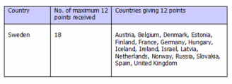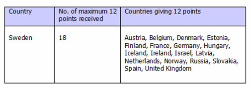 1) I wish I was that clever! I was just trying to make the point that the TRT guy’s complaints about Sweden winning because of block voting are totally unfounded. I don’t think he’s aware that Loreen broke Rybak’s record of the most douze points ever recieved, and amazingly not all of them were from other Scandinavian countries…I heard someone say today that if he thinks the contest is so predictable, he should tell us now who’ll be in the top 10 next year. I would very much like to see him do that!