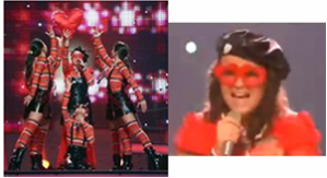 Bulgaria – there’s no sartorial pairing quite like stripes + gaudy and distracting plastic glasses + PVC aprons with pants underneath, is there? I really like this song, but those outfits were bad. Perhaps they were the reason Bulgaria came last.