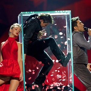 Russia: This was not as slick as it was in the semi. Dina’s hair was limper, her vocal wasn’t as impressive, and those light-up balls were thrown into the audience a little too late. I’d be lying if I said I wasn’t pleased, since those tiny errors spelt N-O W-I-N F-O-R T-H-E R-U-S-S-I-A-N C-H-E-E-S-E.