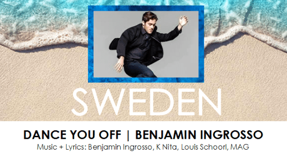 My thoughts Sweden may not be alphabetically last in this round of reviews, but this is my 43rd review for the year – i.e. I wrote it after the Swiss one below. I decided to save Sverige for as long as possible, like I was eating a particularly delicious slice of chokladkaka and leaving all of the frosting until last. Why? Well, if you’ve read literally any of my posts before, you’ve probably picked up on my Swedophile status: they’re my favourite Eurovision nation, I speak a fair bit of Svenska and am always teaching myself more, and I’ve traveled to Stockholm twice in the past two years (for the ESC in 2016 and for the Melodifestivalen final in 2017). Needless to say, I’m biased as heck when it comes to the country’s contest entries, and you won’t be shocked to discover that Dance You Off is my #1 song of this year’s comp. Some Eurofans hate it and think it’s trash; others aren’t bothered either way; and then there’s people like me who think it’s INCREDIBLE and actually cried a little when Benjamin won Melfest in March (okay, so I might be the only person who cried). I understand why the song doesn’t appeal to everyone, but I’ll tell you why it appeals to me. Firstly, Benjamin’s musical stylings are right up my street, and I love every song he’s released prior to this – Do You Think About Me, One More Time and last year’s Melfest entry Good Lovin’ in particular tap into the polished, slick and summery dance-pop I have a weakness for. Then there’s the resemblance between Dance You Off and two cracking songs by another of my favourite artists, The Weeknd – Can’t Feel My Face and I Feel It Coming. Those two songs and DYO all take inspiration from the late 80s and early 90s, and mesh those influences with late 2000s pop trends to create effortless cool. THEN there’s my tendency to fangirl over anyone who can whip out some falsetto and smooth dance moves simultaneously (I am aware that Benjamin is too young for me and has insanely hairy Italian arms, but I can still admire his talents, right?). You can add to that simple, but at times downright genius lyrics – ‘Treated you good, we were gold, I dug you like you were treasure’ = OH YES. Last but in no way least, there’s the fan-bloody-tastic staging concept that sees Benjamin bring a music video to life on a stage within a stage. Visually, this is so impressive – the first time you see it especially, but I’ve watched this performance more than any other and I’m still in awe. Unfortunately, because Sweden is criticised more harshly than any other Eurovision country if they don’t have a surefire, mass appeal winner on their hands, I feel this entry is receiving more hate than it deserves. But in a nice act of revenge, it will probably do better than a lot of people think. Don’t discount the fact that many people will see Dance You Off in all its light-up glory for the first time during Thursday’s semi, and even if they don’t like the song, the staging is easily spectacular enough to suck up votes like a vacuum. When Sweden inevitably reaches the final, they might not do quite as well as they have the past two years (though I believe this should do better than 5th) but there’s a top 10 place with their name on it. I hope that some day soon, Sweden stops being punished by Eurovision fans for their streak of success (even if it’s for selfish reasons because I’m sick of seeing hate comments directed at my favourite songs). Regardless…Team Ingrosso, NU KÖR VI!