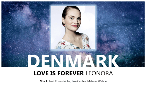 So, Love Is Forever. For some reason I feel differently about this song every time I listen to it. One minute I think it’s cute and I really like the campfire feel, off-the-wall lyrics and language mix. The next, I think it’s way too sugary sweet, it gets on my nerves and I’m a) creeped out by Leonora’s unblinking eye contact down the camera and b) confused by the presence of that giant chair. It is a cute song, and the lyrics are (mostly) original and rhyme super-satisfyingly without resorting to fire/higher/desire – a trademark of co-writer Lise Cabble (who’s written a heap of DMGP and Eurovision hits including New Tomorrow and Only Teardrops). At the same time, it’s so twee that it borders on being more suited to JESC than ESC, right down to Leonora’s outfit – as worn by one of Serbia’s Junior artists in 2017. It certainly can be annoying if I’m not in the mood for it. And yes, it sounds like the audio of an ad where a perfect nuclear family frolics in their manicured garden, with their golden retriever and wearing white linen, in celebration of successfully removing a miniscule stain from said white linen with a revolutionary new laundry product.